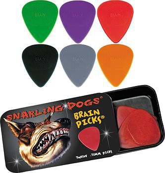 Snarling Dogs Brain picks are made to stay in your hand and on your fingers, exactly where you want them with a gritty gripping surface. Snarling Dogs Brain Guitar Picks and Tin Box. The Snarling Dogs Brain Picks feature a gritty grip surface to prevent slipping and memory tips for accurate picking.